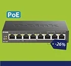 Switch Smart 8p Gigabit+2 SFP, 8p PoE+ (130W PoE Budget), Advanced L2, L3 Static Routing, VLANs, MSTP, Auto IGMP, Gestión unicada local/remoto con software gratuito Nuclias Connect Switching/Wireless | DGS-1210-24/E